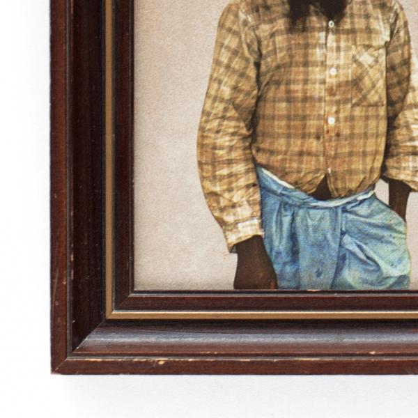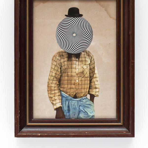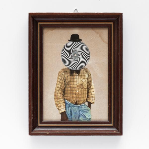 Handmade Collage on old paper, in vintage wooden frame with matt glass.