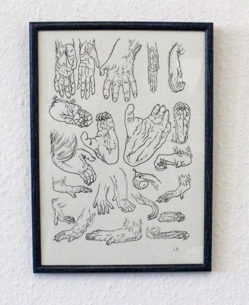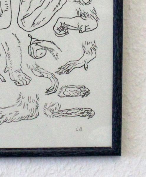 Monotypie mit blauer Risofolie auf Papier. Original. Es gibt es nur einmal. Das Bild befindet sich in einem blauen Holzrahmen mit Glas.