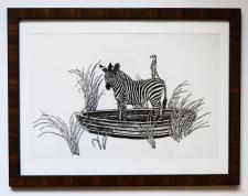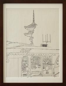 Pigment liner on rice paper. Mounted in a Bamboo frame with anti reflection coated glass.