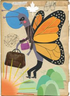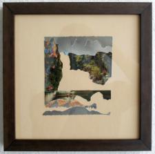 Collage made of vintage postcards on paper, framed. Paper format 20 x 20 cm.