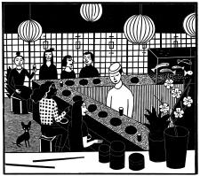pigment liner on rice paper. mounted in a bamboo frame with anti reflection coated glass.