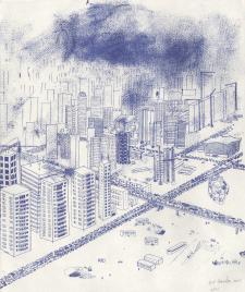Tuschezeichnung aus der Serie Biesterfrei, veröffentlich in dem Lyrikband I AM THE ZOO, Peter Engstler Verlag 2014.